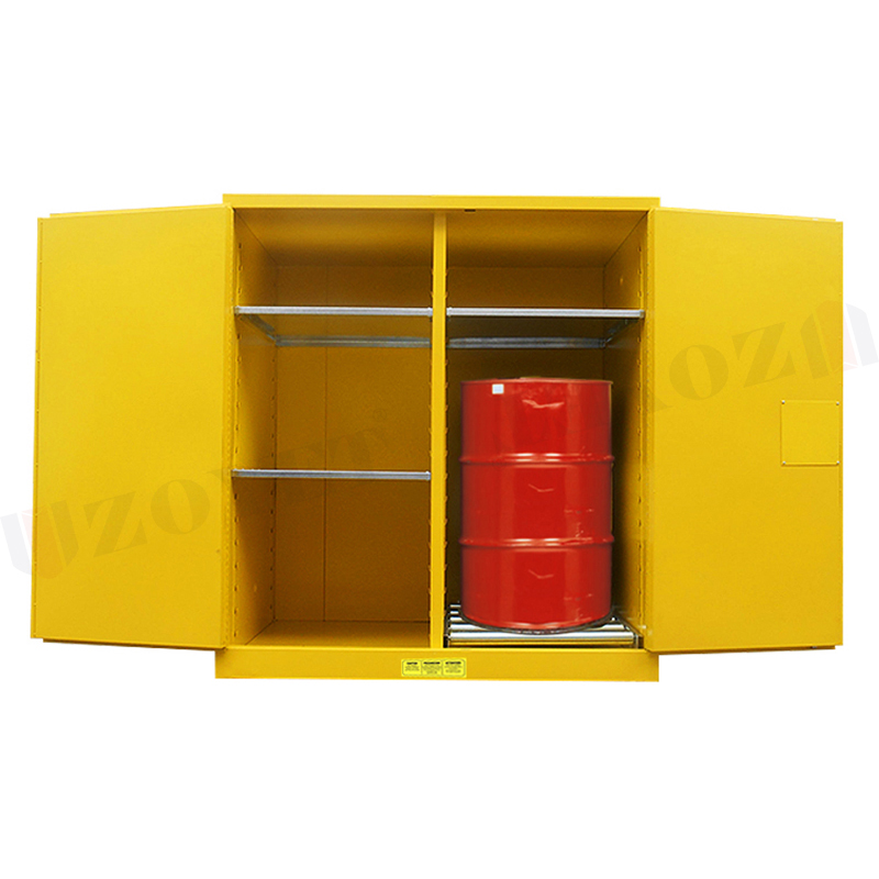 產(chǎn)品簡介:是指可以存放兩個以上200L圓桶的組合型油桶防火柜,是雙開門,可配油桶滾筒底座等。
