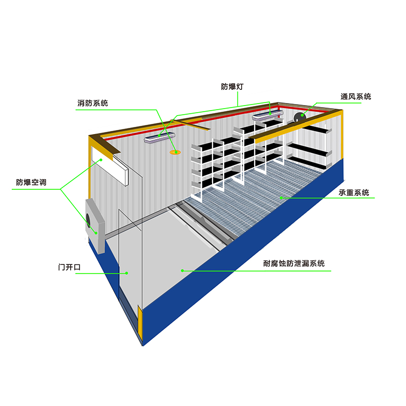 顏色:藍白 產品型號:ZYCCX5000 尺寸規格:3000*6000*2500mm 產品描述:實驗室廢棄物一般具有易燃、易爆、有毒的特性,其銷毀或再生處理之前的保管非常重要,易燃及危險化學品如 缺少安全的儲存環境,容易引起火災或有毒化學品的泄漏,危及人們生命...