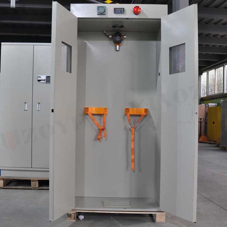 2:柜體配有氣瓶抱箍,可以防止氣瓶傾倒,采用5mm厚平板玻璃。