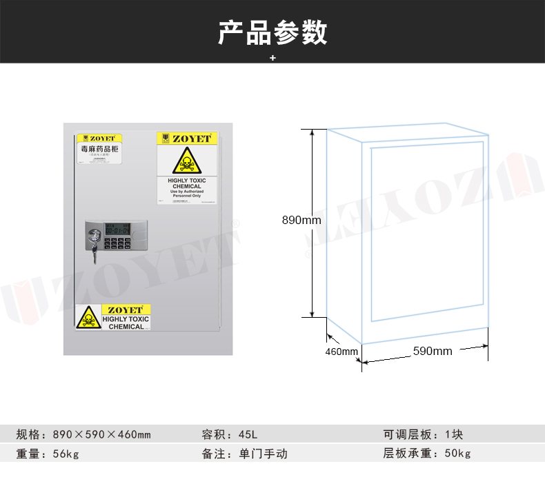 產品描述:12加侖毒麻藥品柜是尺寸為890*590*460mm有毒化學品存放柜,購買毒麻藥品柜12加侖請選擇眾御,大品牌,安全有效存儲有毒有害化學品。...