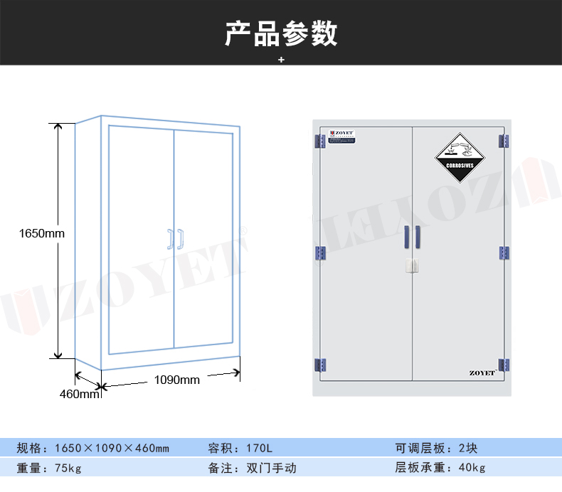 產品柜門:貼有醒目的“腐蝕性”警示標識,各種大小尺寸雙開門或單開門式樣均可訂做。